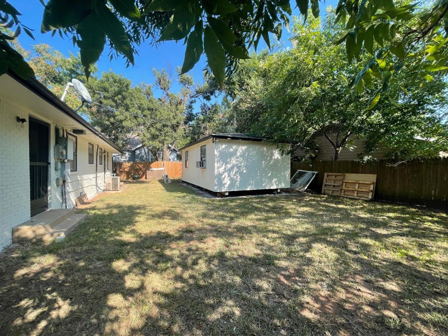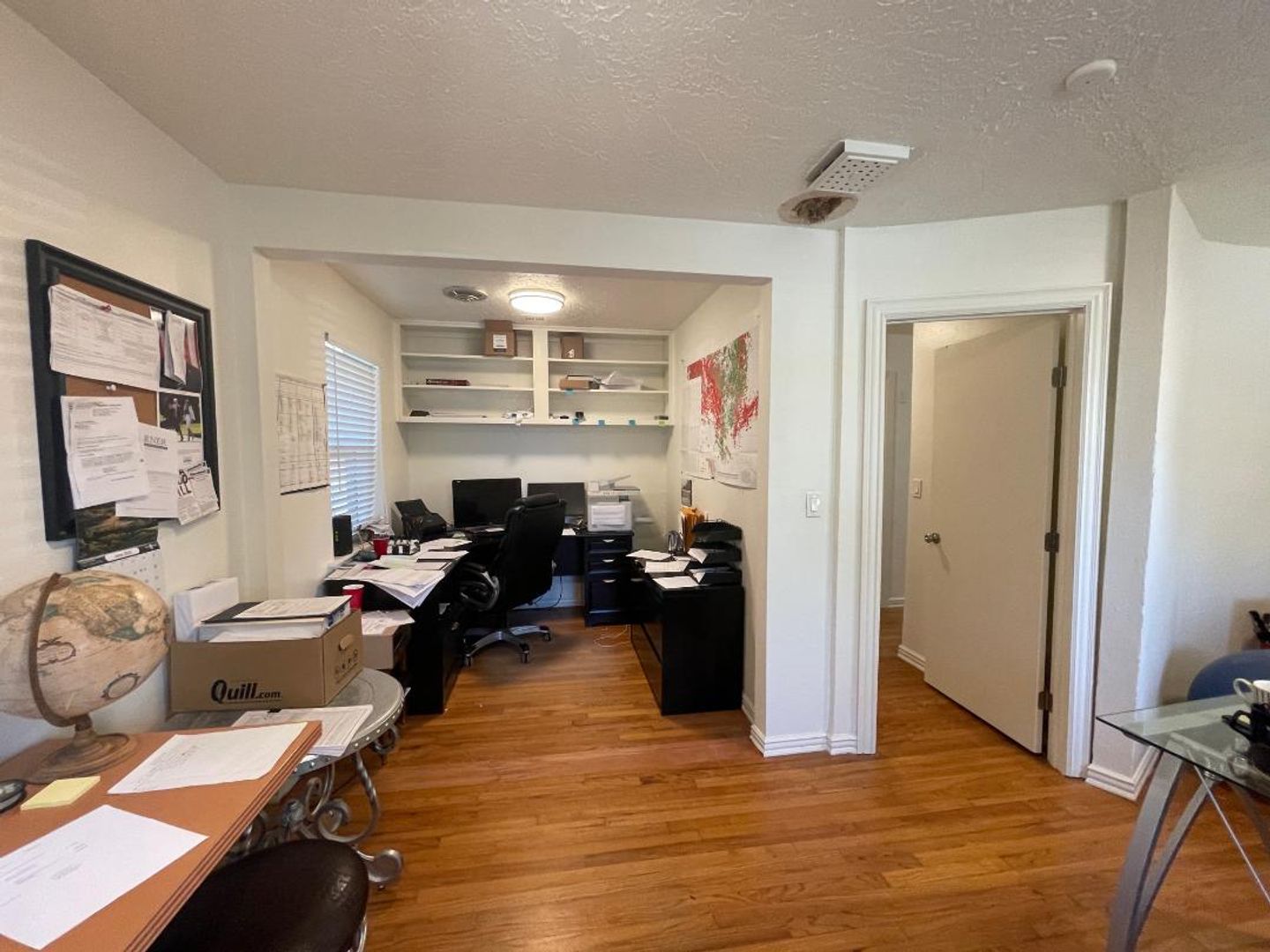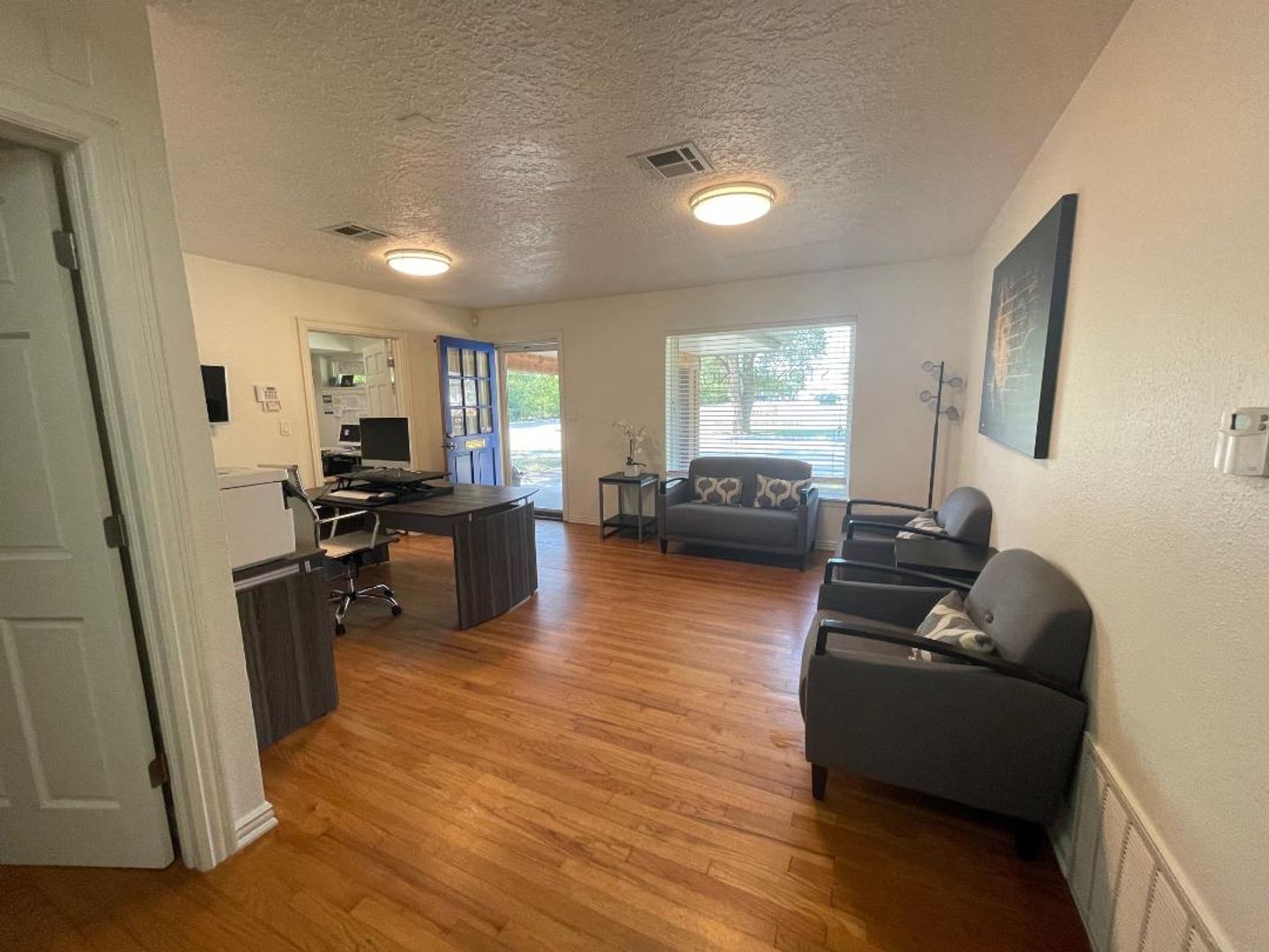 Office space available for lease 10/01/2025. This is a great space with a large reception area, conference room, 2 private offices, large kitchen area, 1 full bath, 2 1/2 baths, lots of options here! Fenced backyard with a large storage building. This property has been recently updated with interior and exterior paint, cedar beams, shutters, and more. $1,500 a month.